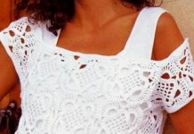 Белоснежный топ из квадратных мотивов связан крючком. Схема вязания топа крючком