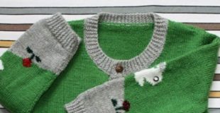 Развеселая ребяческая кофточка связана спицами. Кофточку украшают бело-серые кролики, какие резвятся на зеленой лужку. Кофточку с таким узором ваши ребята будут носить с вящим...