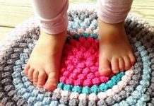 Коврик рисунком Попкорн Прелестный коврик круглой формы связан узором "Попкорн". Рисунок избранный для этого коврика получается объемным, поэтому такой ковер весьма симпатичный для ног и...
