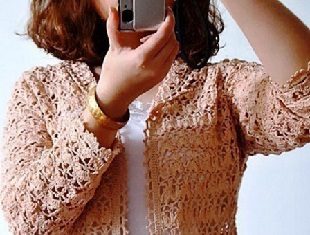 Кружевной жакет на пугавицах связан крючком №2,5 и №3,5 из пряжи 100% хлопок. Размер 34-38 и 40-44. Схема вязания кружевного жакета крючком.