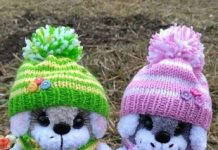 Символ 2018 года спицами Милые собачки, какие являются символом 2018 года по восточному гороскопу связаны спицами.! Собачки одеты в забавные шапочки в полоску и подвязаны...