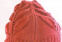 Шапочка с рисунком "листья" связана спицами №3.75 и 4.5. Вязаная шапка схема