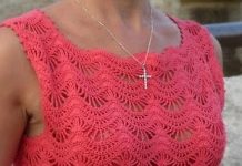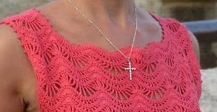 Коралловый топ связан крючком рисунком "Зиг-зак". Схема вязания топа крючком