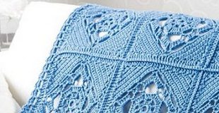 Плед из квадратных мотивов связан крючком. Схема вязания рисунка для пледа крючком.
