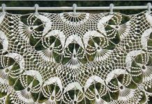 Описание взято из журнала "Махонькая Диана" № 7 2013 г. Плат с длинной бахромой связан крючком № 3,5 из 450 г белоснежной пряжи Micro...